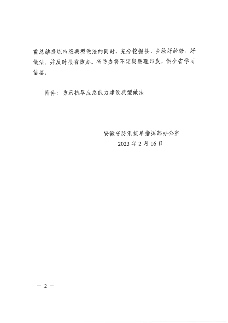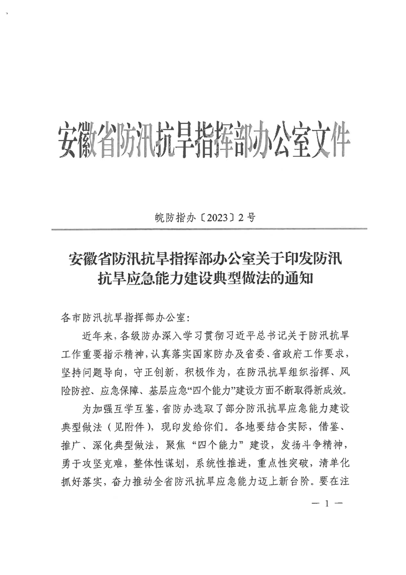转发省防办《安徽省防汛抗旱指挥部办公室关于印发防汛抗旱应急能力建设典型做法的通知》