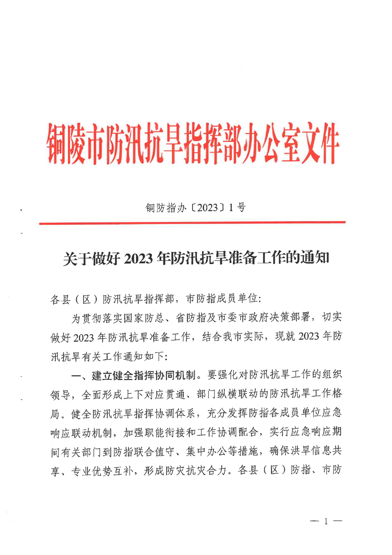 转发市级《关于做好2023年防汛抗旱准备工作的通知》-铜官区人民政府