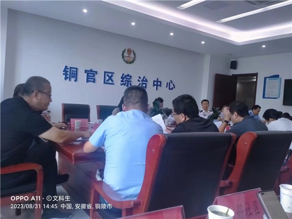 2023年8月31日社区工作人员在在区综治中心参加反邪教宣传“进校园”和重点人员摸排部署会议。