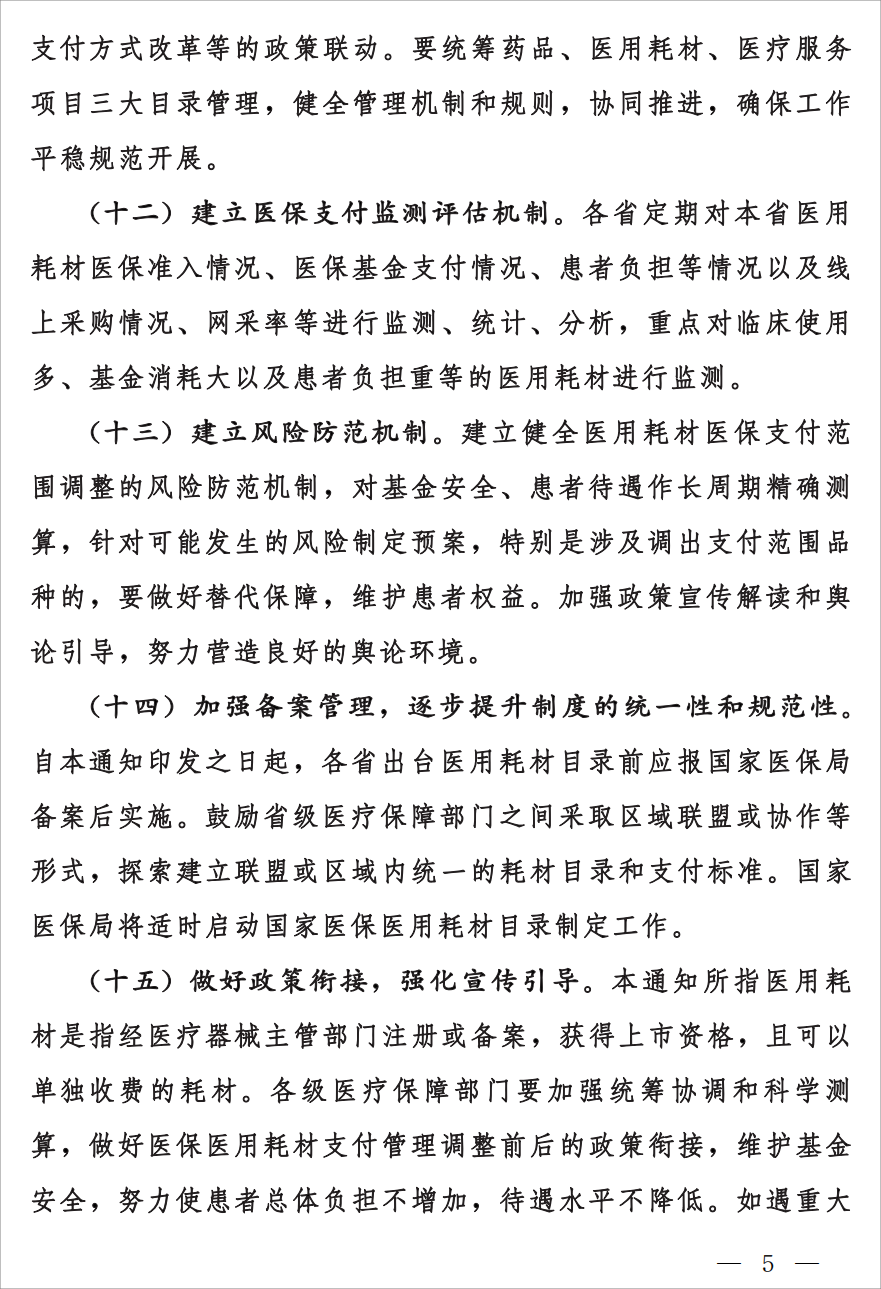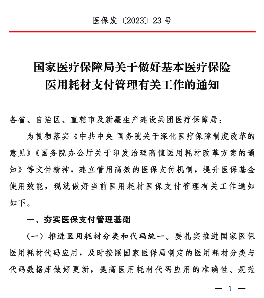 国家医疗保障局关于做好基本医疗保险医用耗材支付管理有关工作的通知