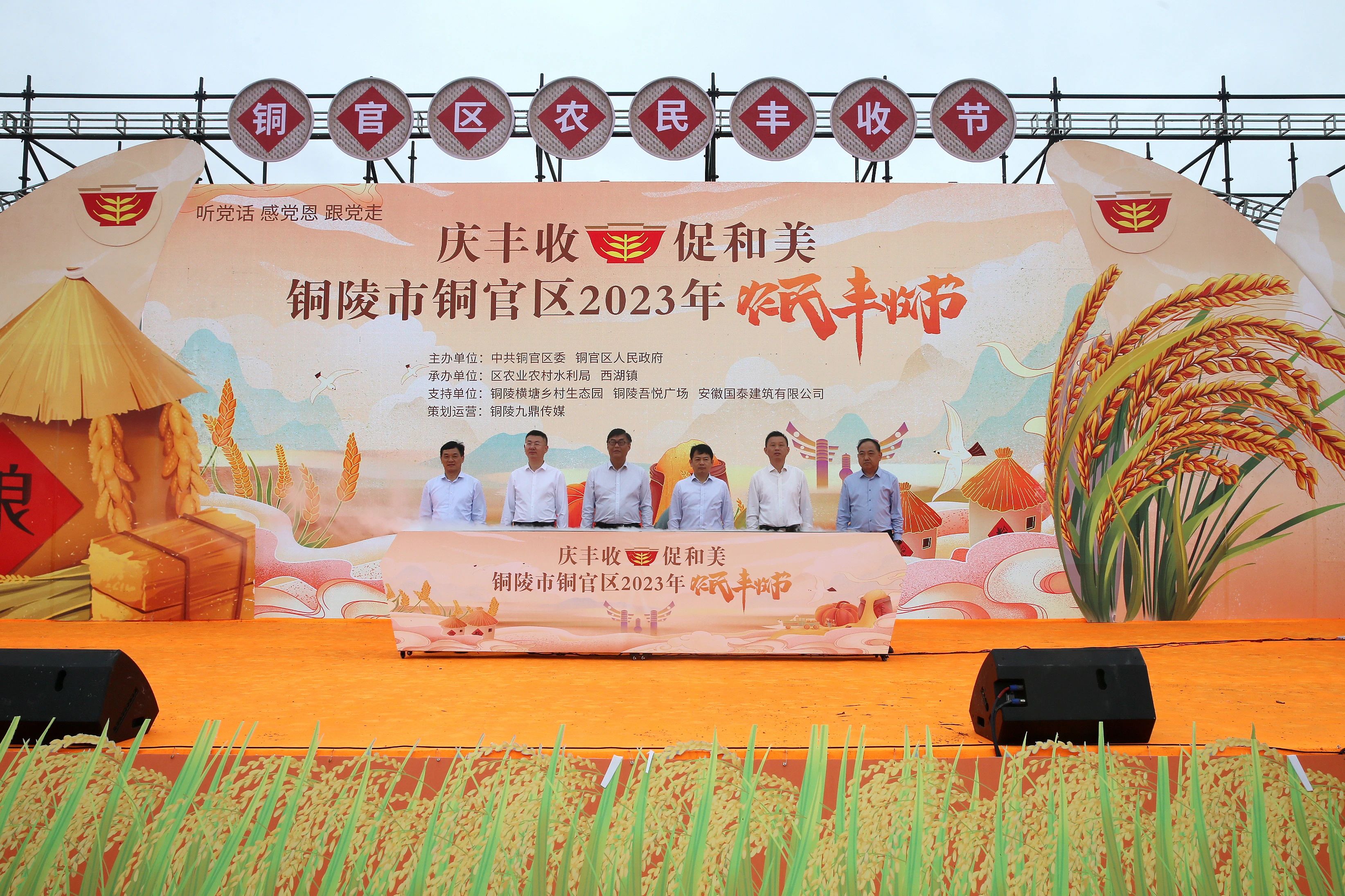 9月23日上午,铜官区2023年农民丰收节在西湖镇横塘乡村生态园开幕。副市长吴强,市政府副秘书长张志远,市农业农村局党组书记、局长程志华,市乡村振兴局副局长余建国,区领导王书春、陈洁、方晓军、汪世应、石之甫、汪志祥、任熙儒、方志远、方萍出席。