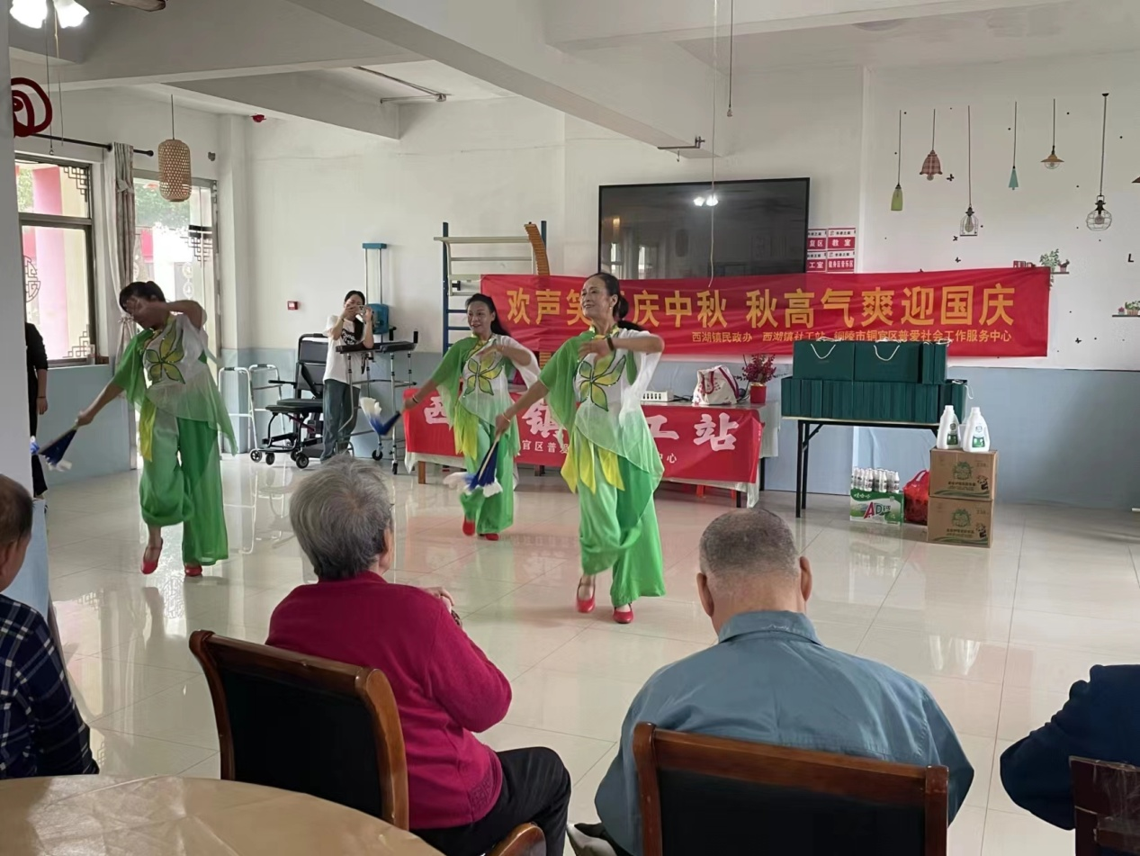 秋风送爽,丹桂留香,又是一年金秋好时节。为迎接即将到来的中秋佳节,弘扬中华民族敬老爱老的传统文化,营造浓厚的节日氛围。2023年9月25日上午,西湖镇民政办联合西湖镇社工站在朝山村敬老院开展“欢声笑语庆中秋 秋高气爽迎国庆”文化演出活动。