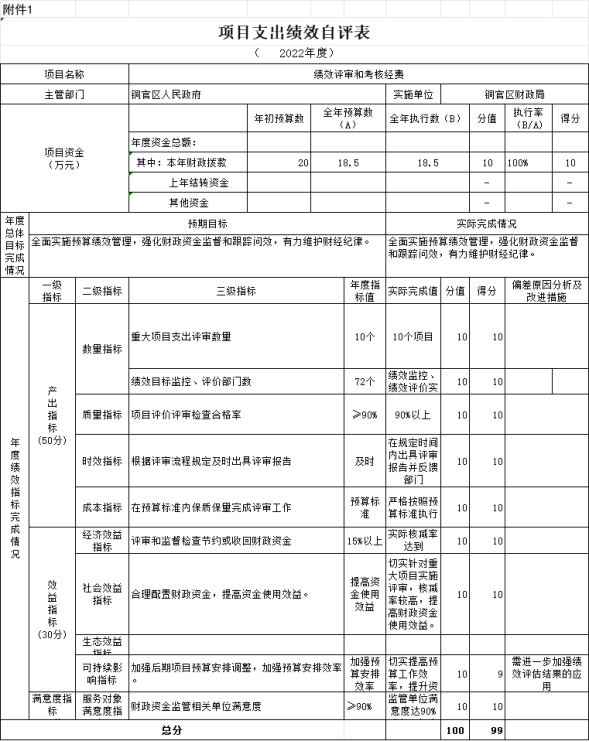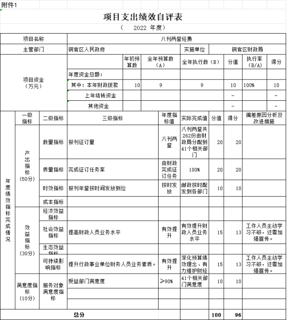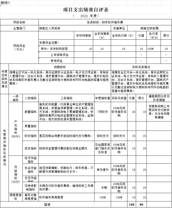 根据预算绩效管理要求,本部门组织对2022年度纳入部门预算的项目支出全面开展了绩效自评,共6个项目,涉及资金332.7万元,占项目预算总额的100%。从评价情况看,基本完成预算绩效目标,保障基本运行,基本完成全区各项财政工作;完成拦标价审核及共有资产管理工作任务;完成好全区财务核算、集中支付、非税收入、预决算总会计、工资统发、债务系统、国有资产系统、惠农补贴等等各项平台工作。