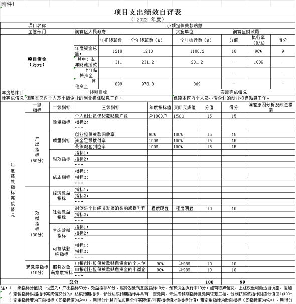 2022年度项目支出绩效自评表及小额担保贷款贴息项目绩效评价报告