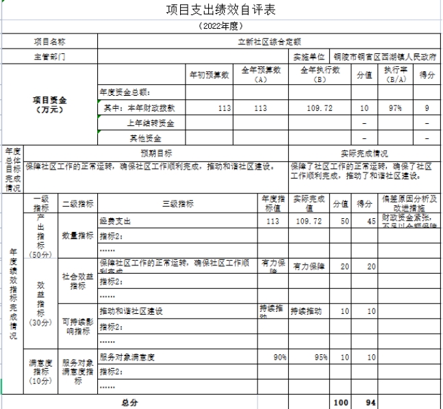 截至2022年底,由于财政资金紧张共支付立新社区综合定额113万元,绩效目标总体完成情况良好。