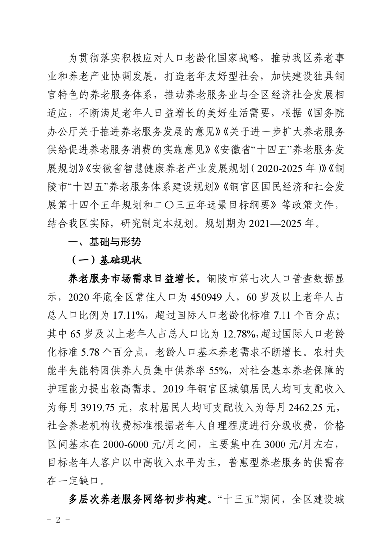 铜官区“十四五”养老服务体系建设规划-铜官区人民政府