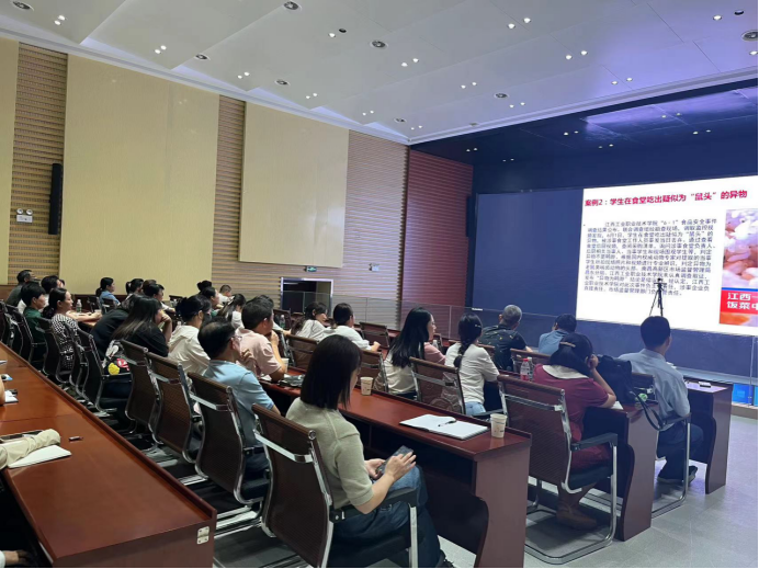 培训会围绕《餐饮服务食品安全操作规范》、食品安全常见隐患、索证索票、从业人员管理、原料进货查验、食材储存、食品加工操作规范、“三防”设施管理、食品安全“两个责任”落实、食品安全事故典型案例分析等方面,通过图文并茂的形式进行讲解,使参训人员直观了解校园食品安全风险隐患点,增强管理从业人员安全意识。