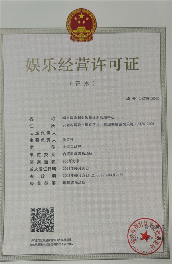 歌舞娱乐场所新设(铜官区永利会歌舞娱乐活动中心)-铜官区人民政府