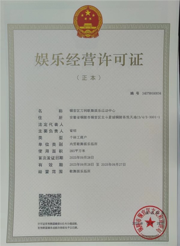 歌舞娱乐场所新设(铜官区刀利歌舞娱乐活动中心)-铜官区人民政府