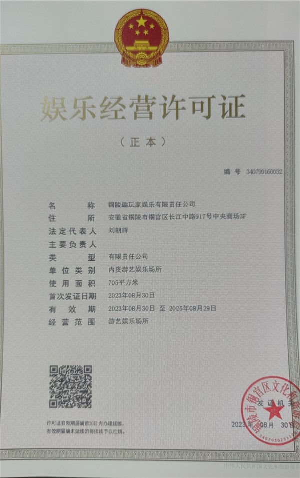 游艺娱乐场所新设(铜陵趣玩家娱乐有限责任公司)-铜官区人民政府