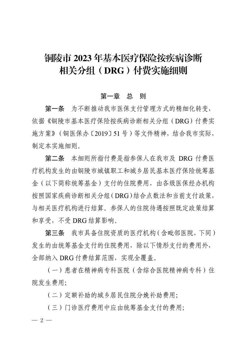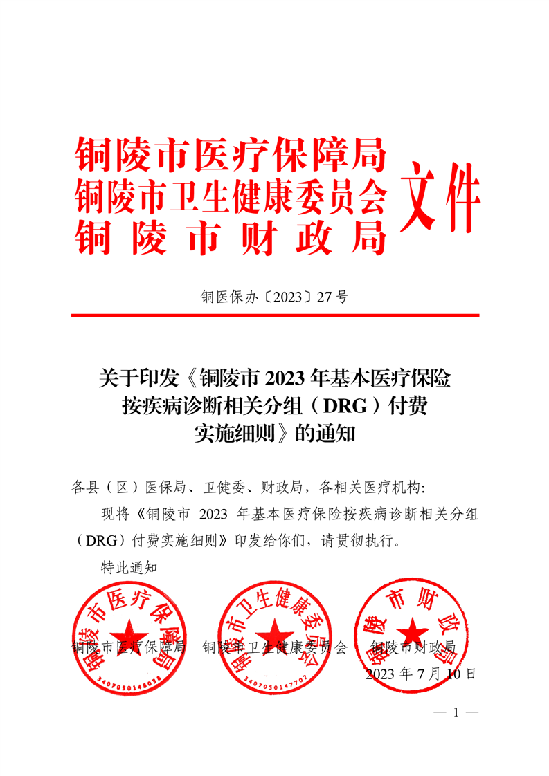 关于印发《铜陵市2023年基本医疗保险按疾病诊断相关分组(DRG)付费实施细则》的通知-铜官区人民政府