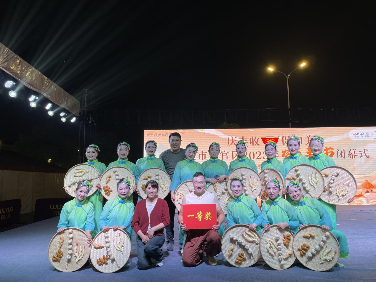 9月24日晚上的闭幕式活动上,开展了农民广场舞大赛。朝山村呈上了以“乡村振兴书画卷 和美朝山展新篇”为主题的舞蹈《丰收果实献给党》,将丰收的喜悦传达给在场的每一位农民,赢的了在场和直播间观众们的一致好评,最终以9.71的高分荣获一等奖。