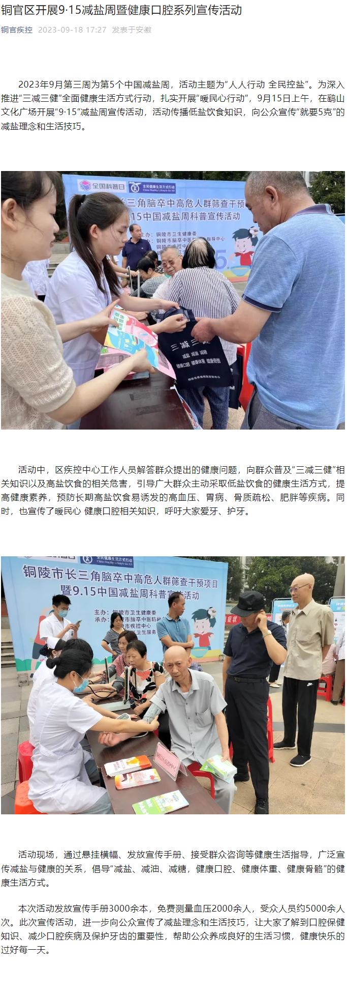 铜官区开展9·15减盐周暨健康口腔系列宣传活动-铜官区人民政府