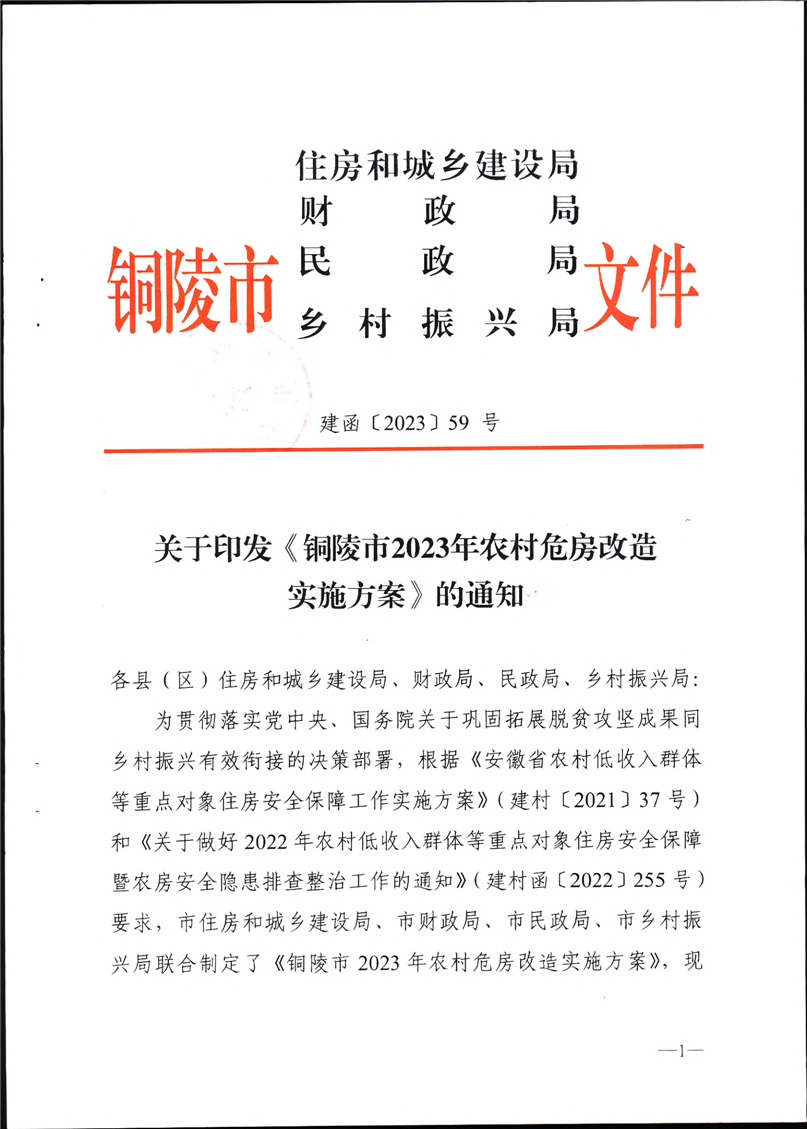 铜陵市2023年农村危房改造实施方案-铜官区人民政府