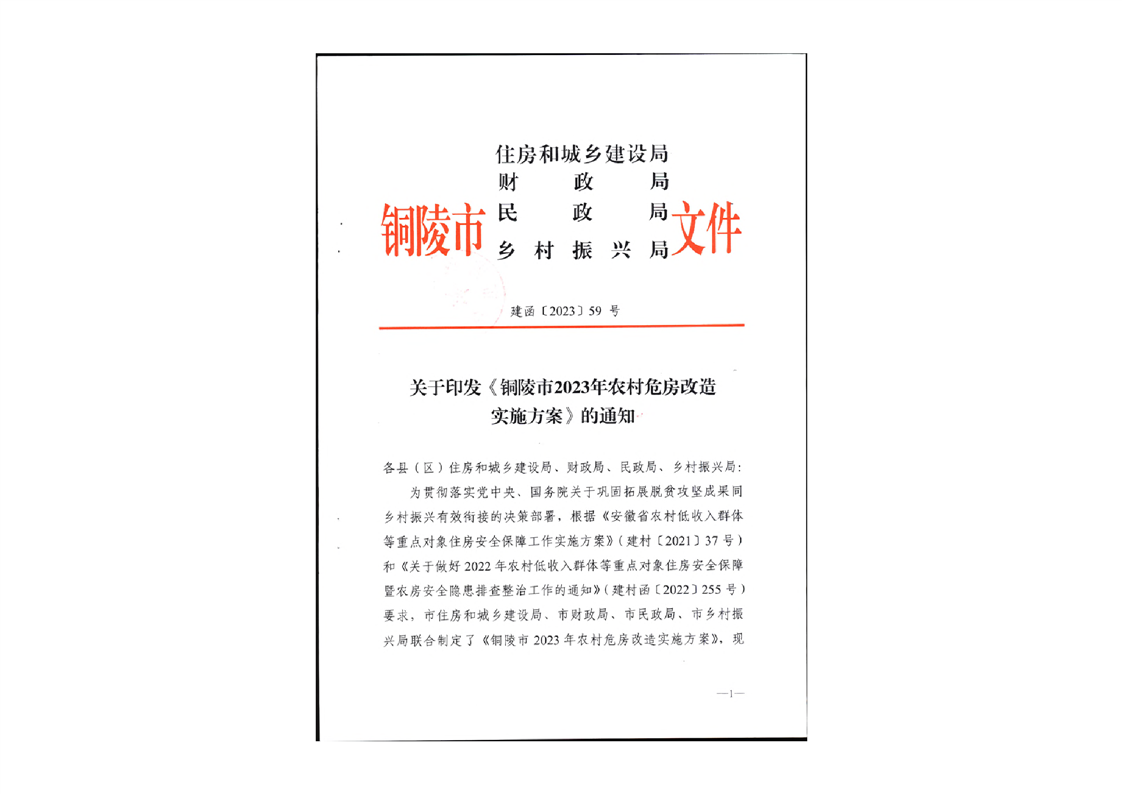 关于印发《铜陵市2023年农村危房改造实施方案》的通知