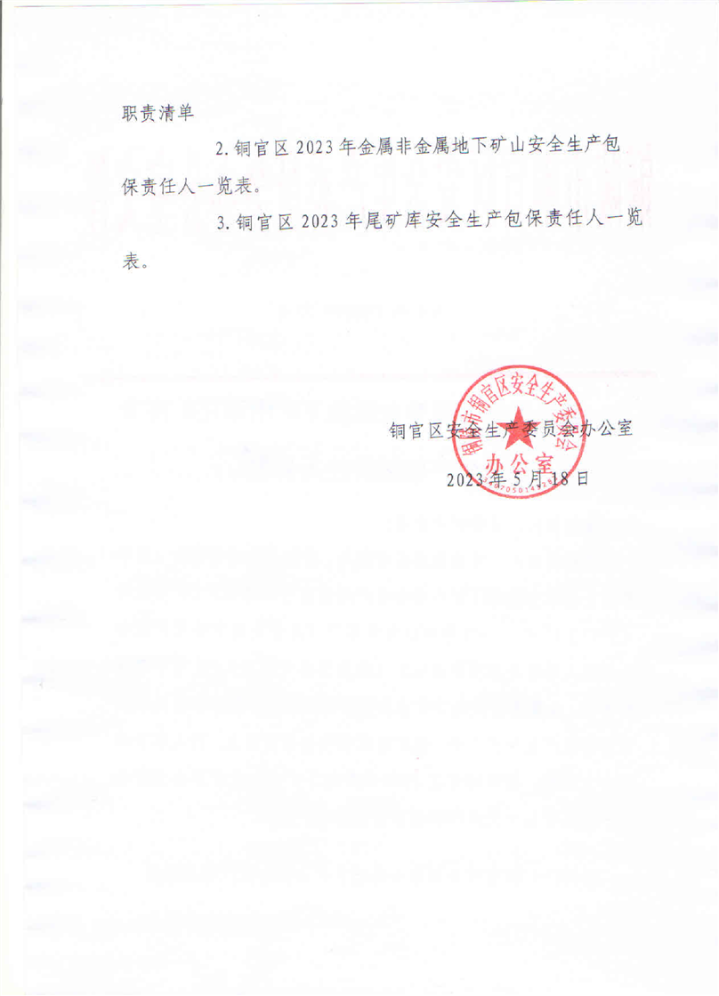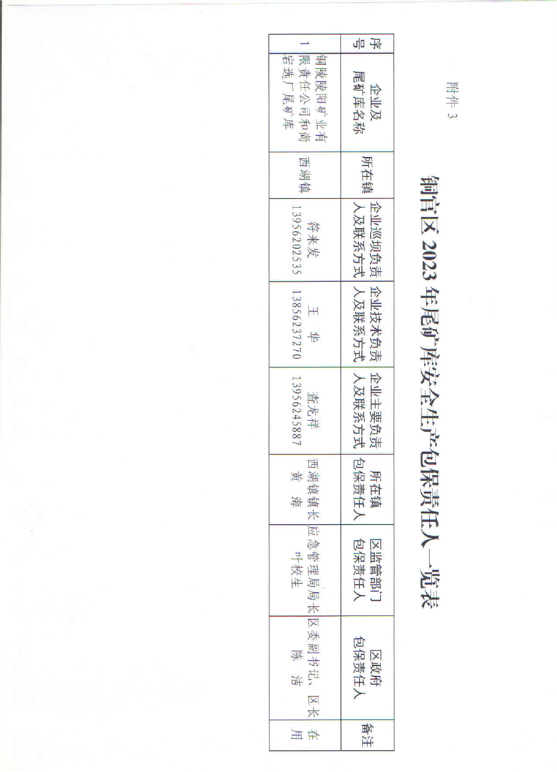 2023年度铜官区地下矿山和尾矿库安全生产包保责任人公告