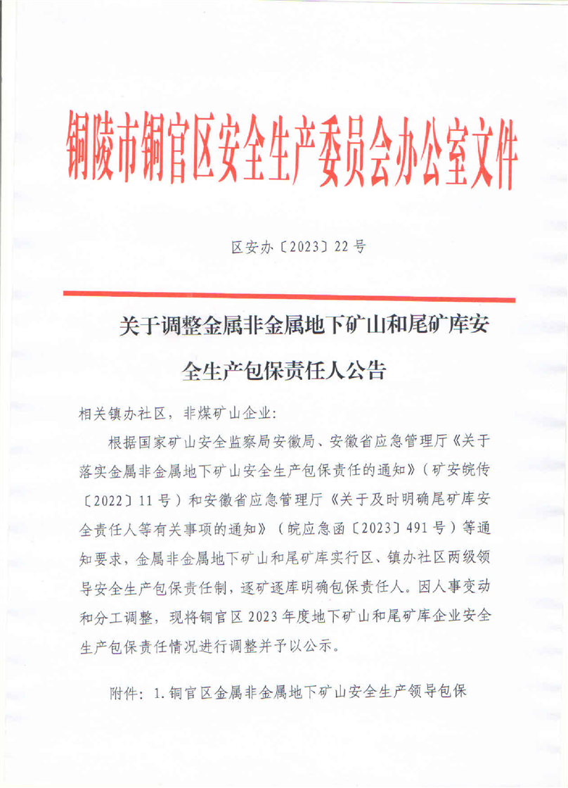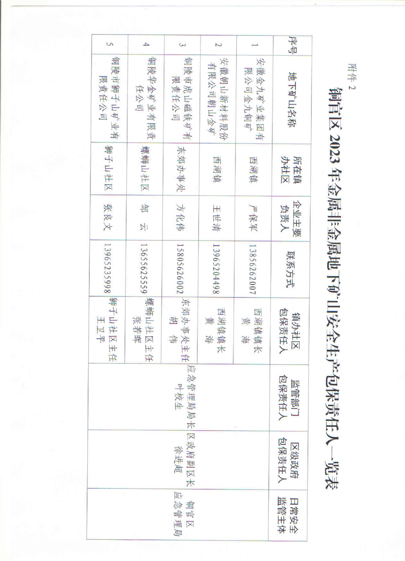 2023年度铜官区地下矿山和尾矿库安全生产包保责任人公告-铜官区人民政府