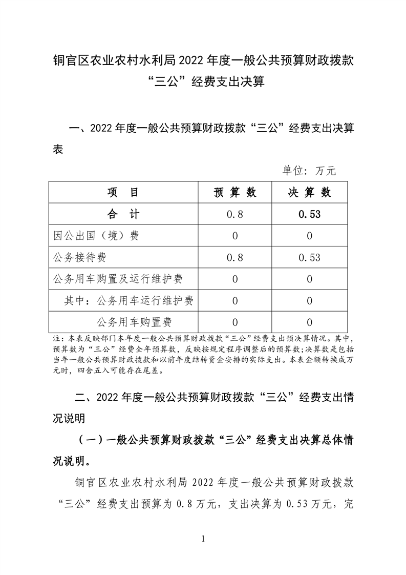 铜官区农业农村水利局2022年度一般公共预算财政拨款“三公”经费支出决算-铜官区人民政府