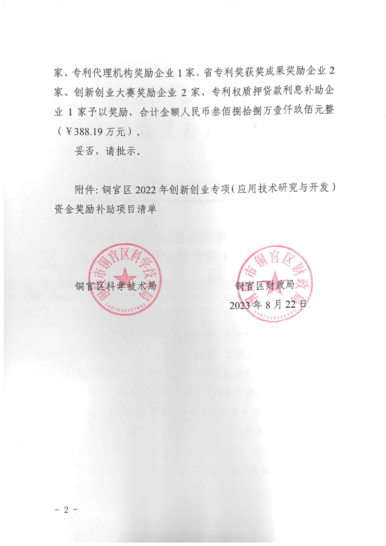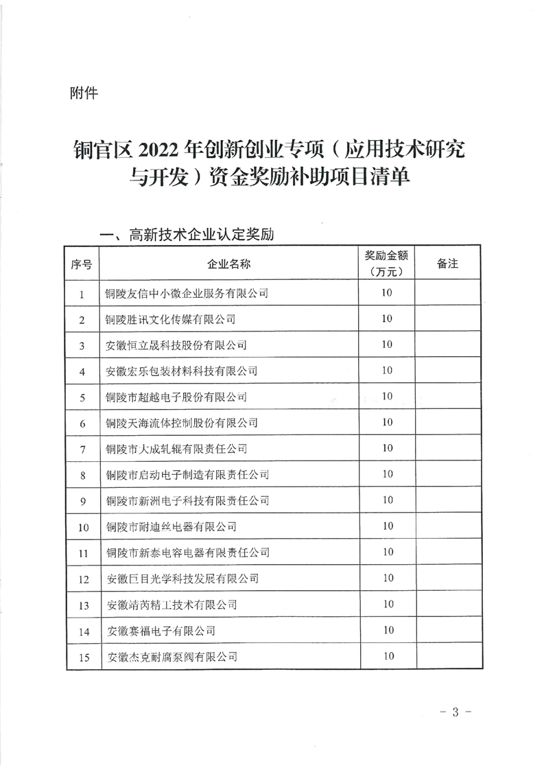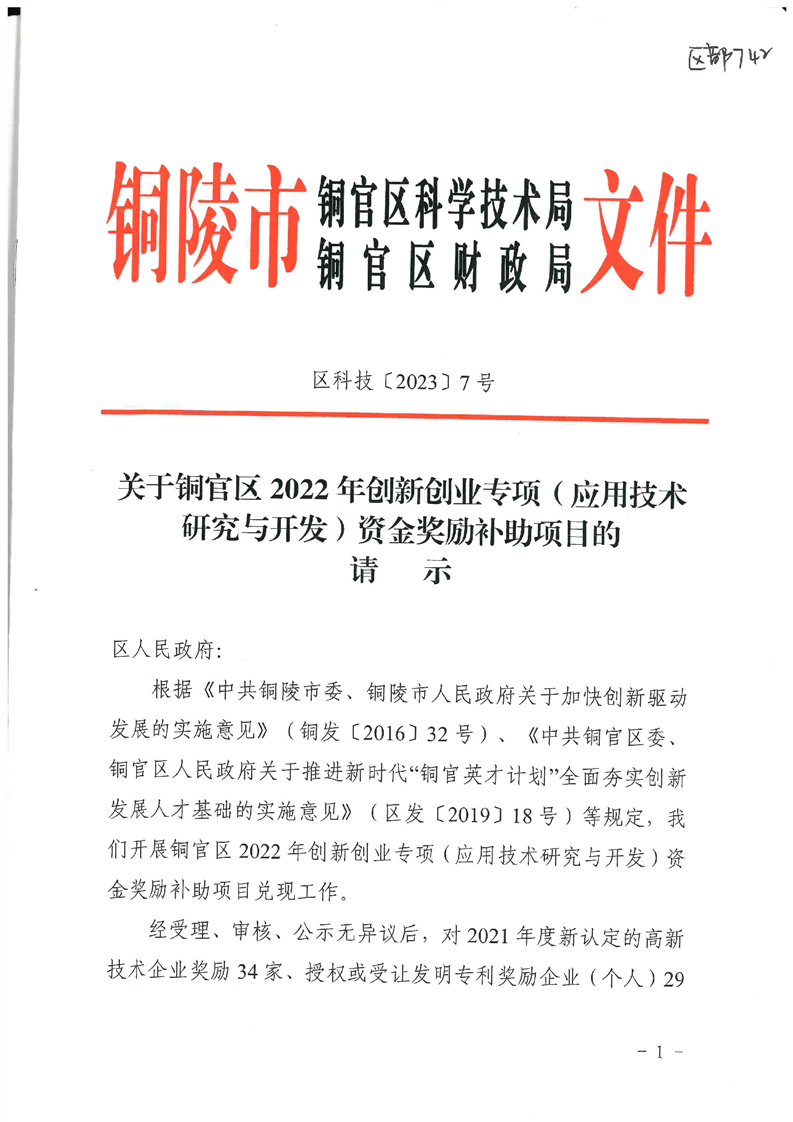 铜官区2022年度创新创业专项(应用技术研究与开发)资金拟奖励补助项目下达-铜官区人民政府