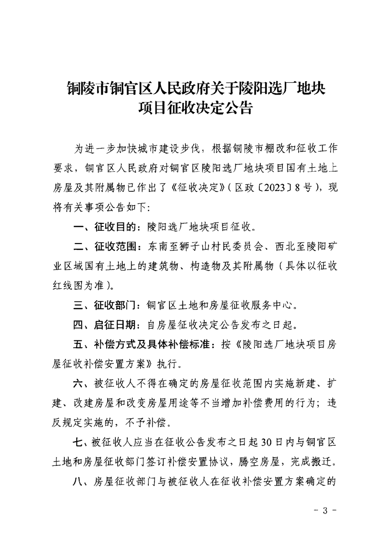 铜陵市铜官区人民政府关于陵阳选厂地块项目征收决定