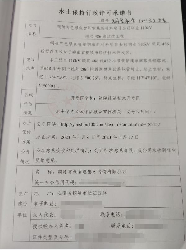 水土保持行政许可承诺书——铜官承字(2023)5号