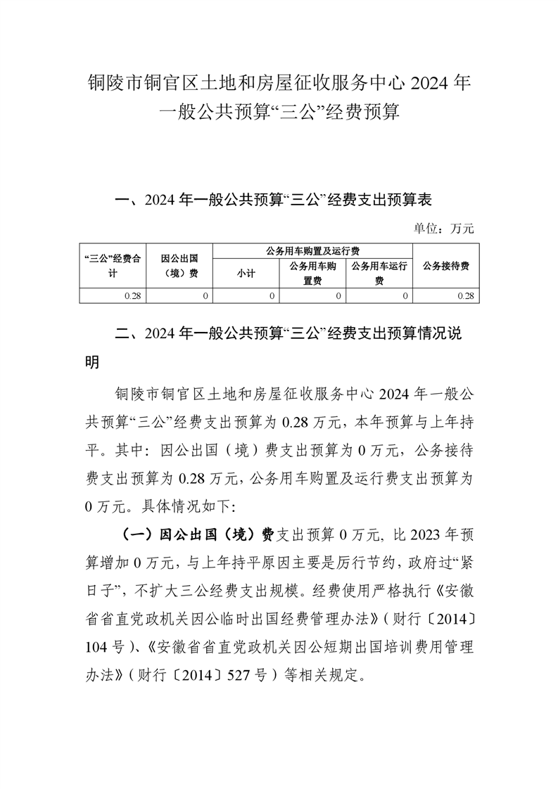 铜陵市铜官区土地和房屋征收服务中心2024年一般公共预算“三公”经费预算-铜官区人民政府
