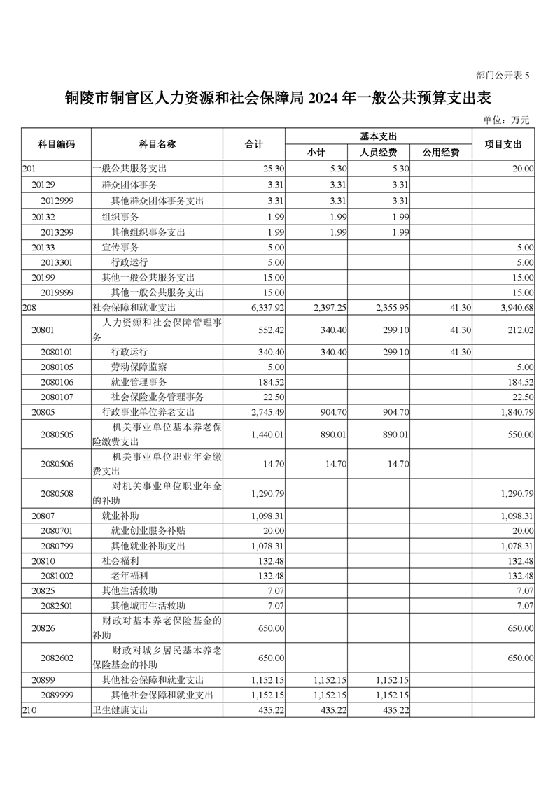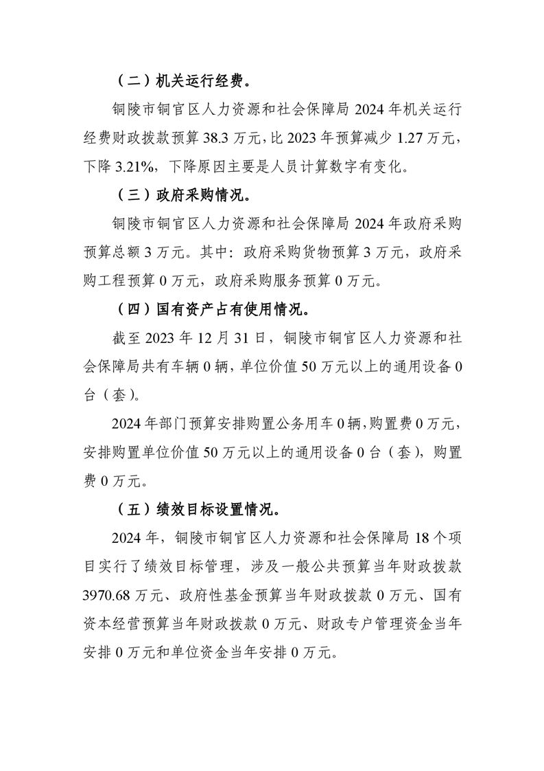 铜官区人力资源和社会保障局2024年部门预算公开-铜官区人民政府