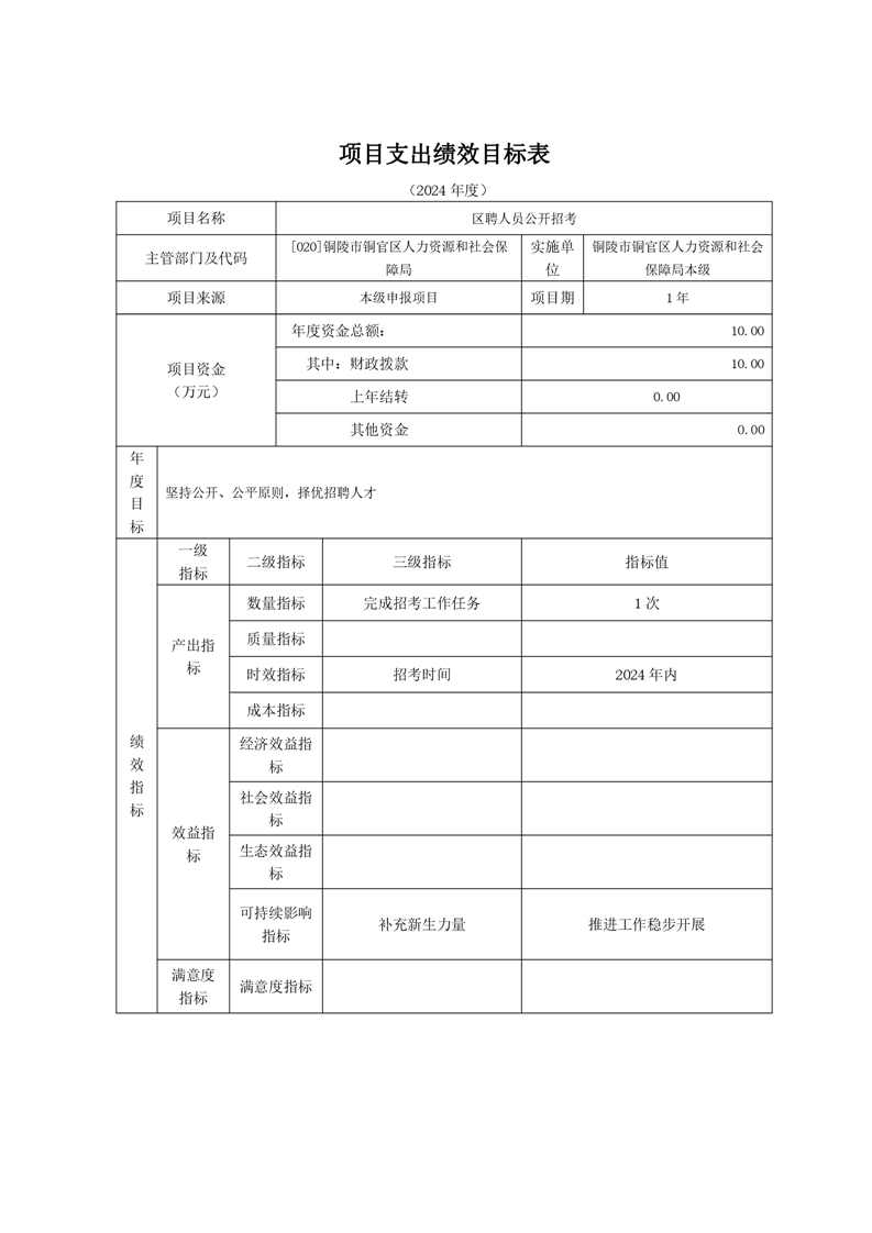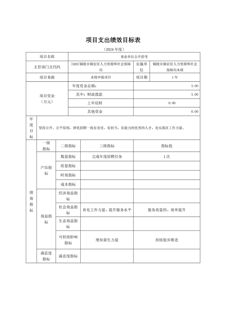 铜官区人力资源和社会保障局2024年部门预算公开