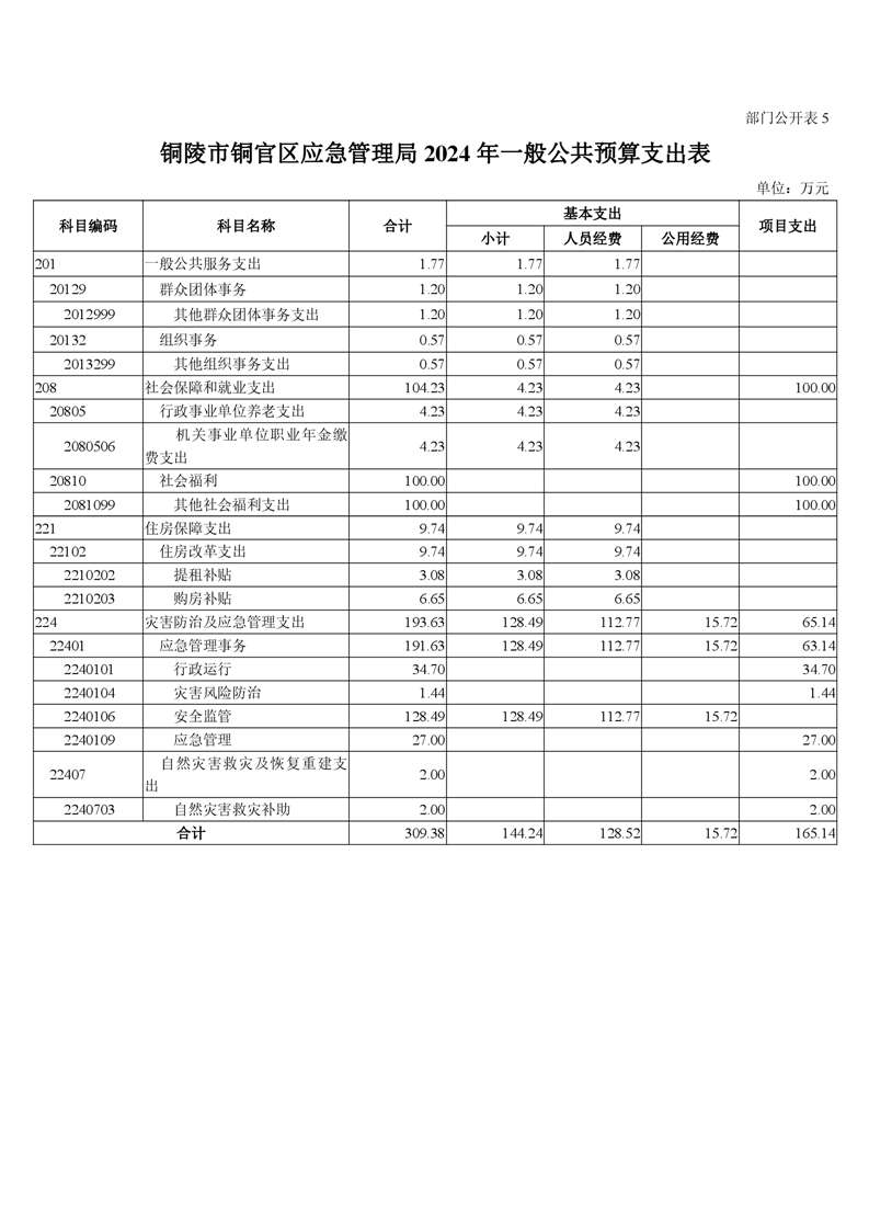 铜陵市铜官区应急管理局2024年度预算-铜官区人民政府