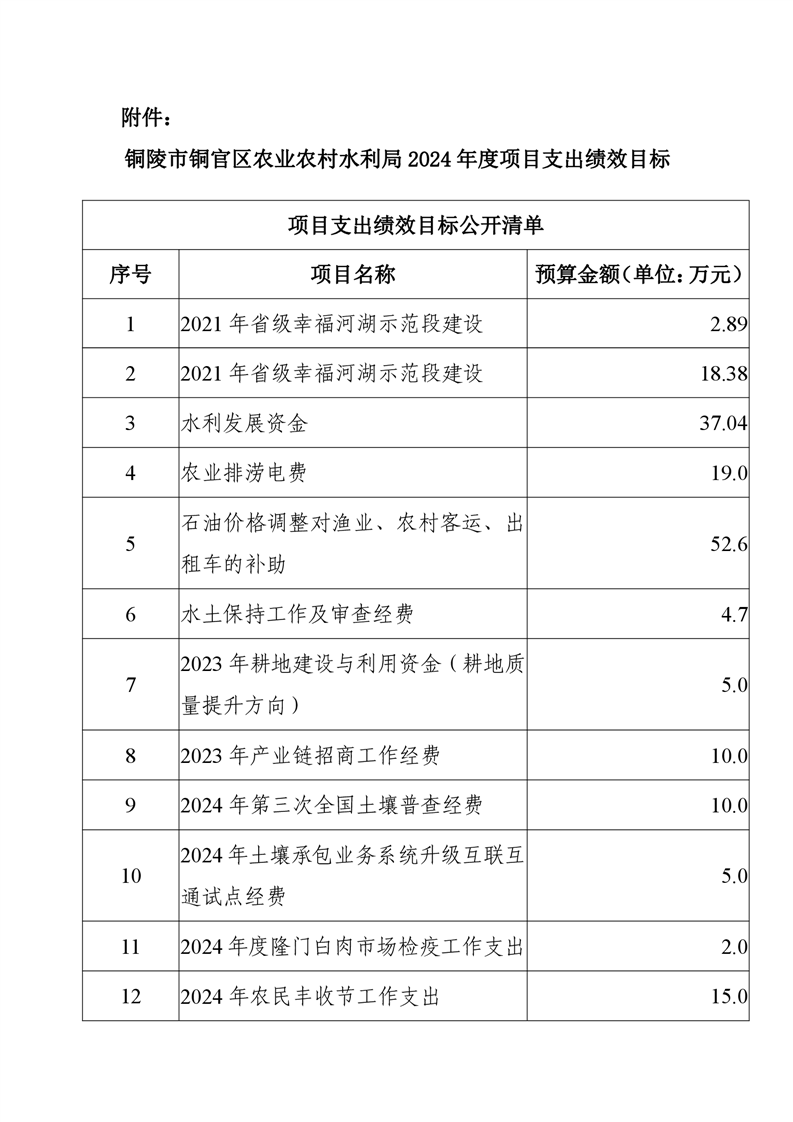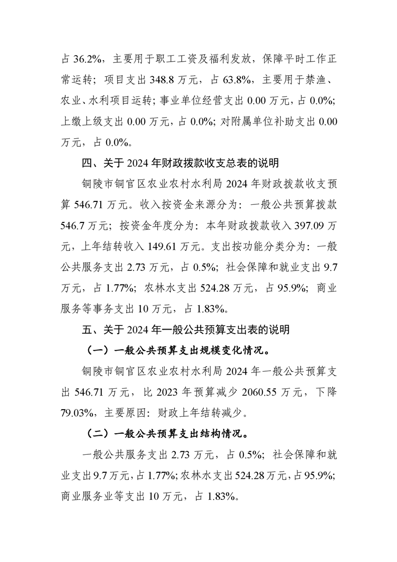 铜陵市铜官区农业农村水利局2024年部门预算-铜官区人民政府