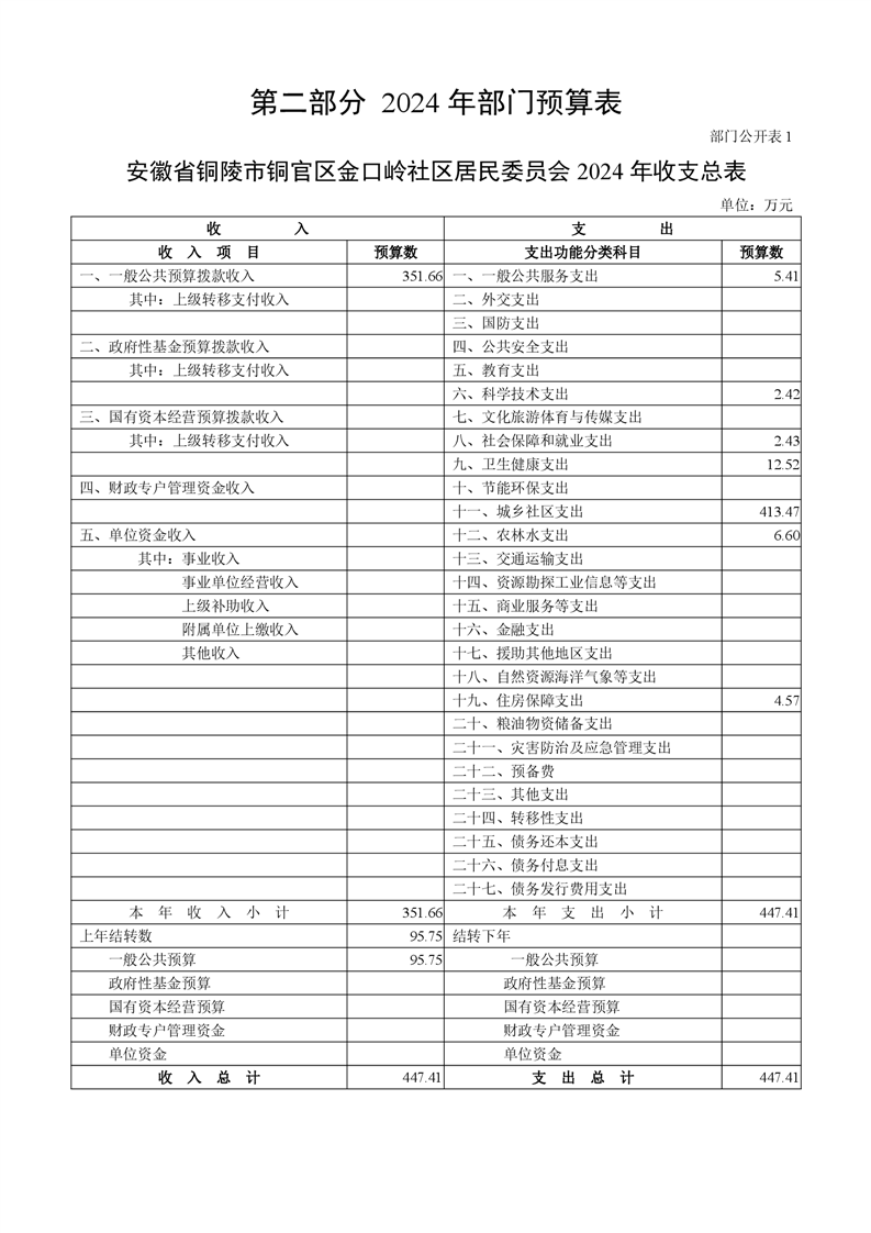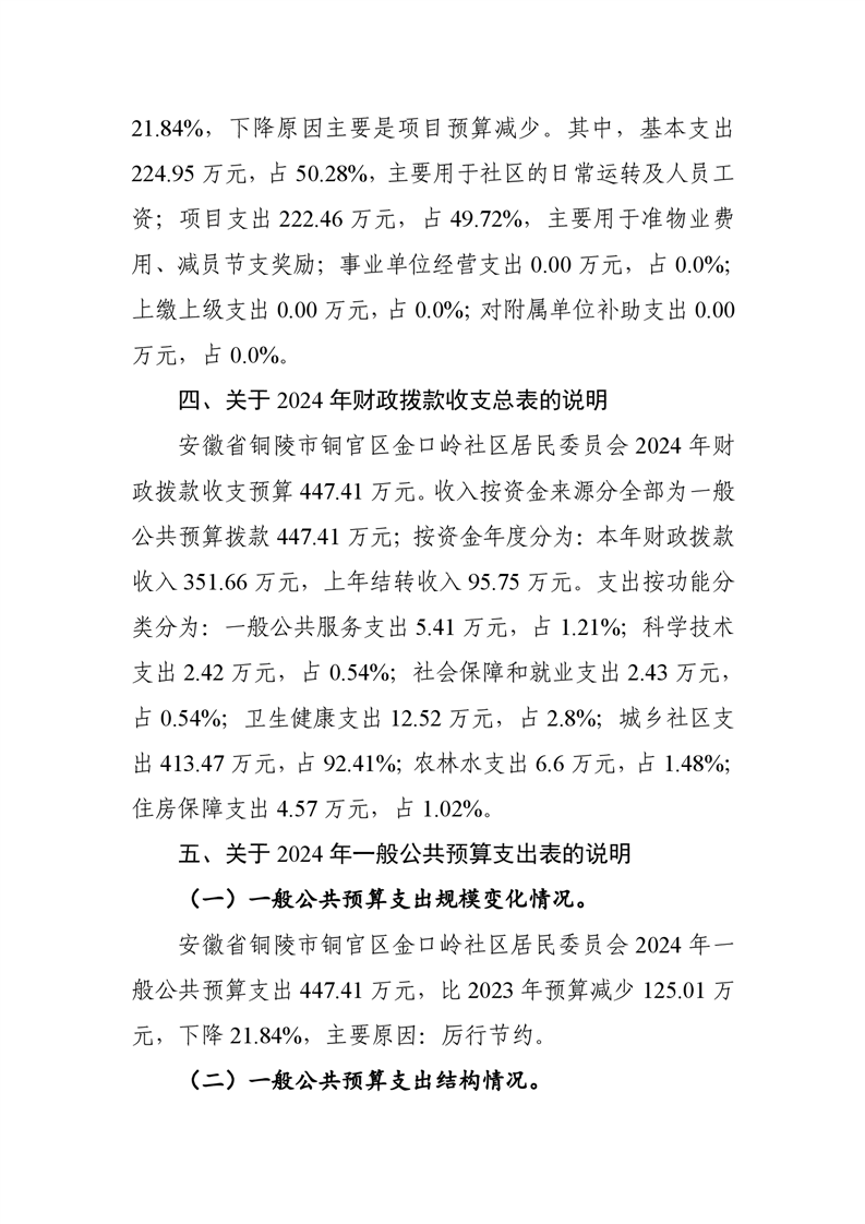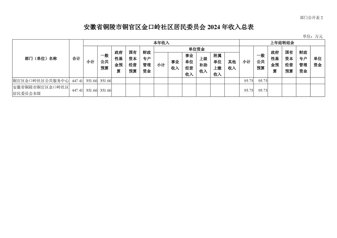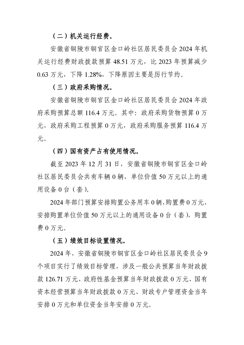 铜官区金口岭社区2024年部门预算-铜官区人民政府