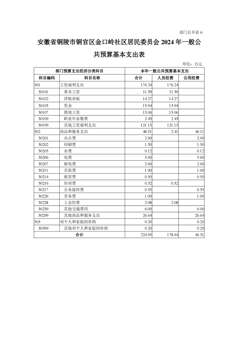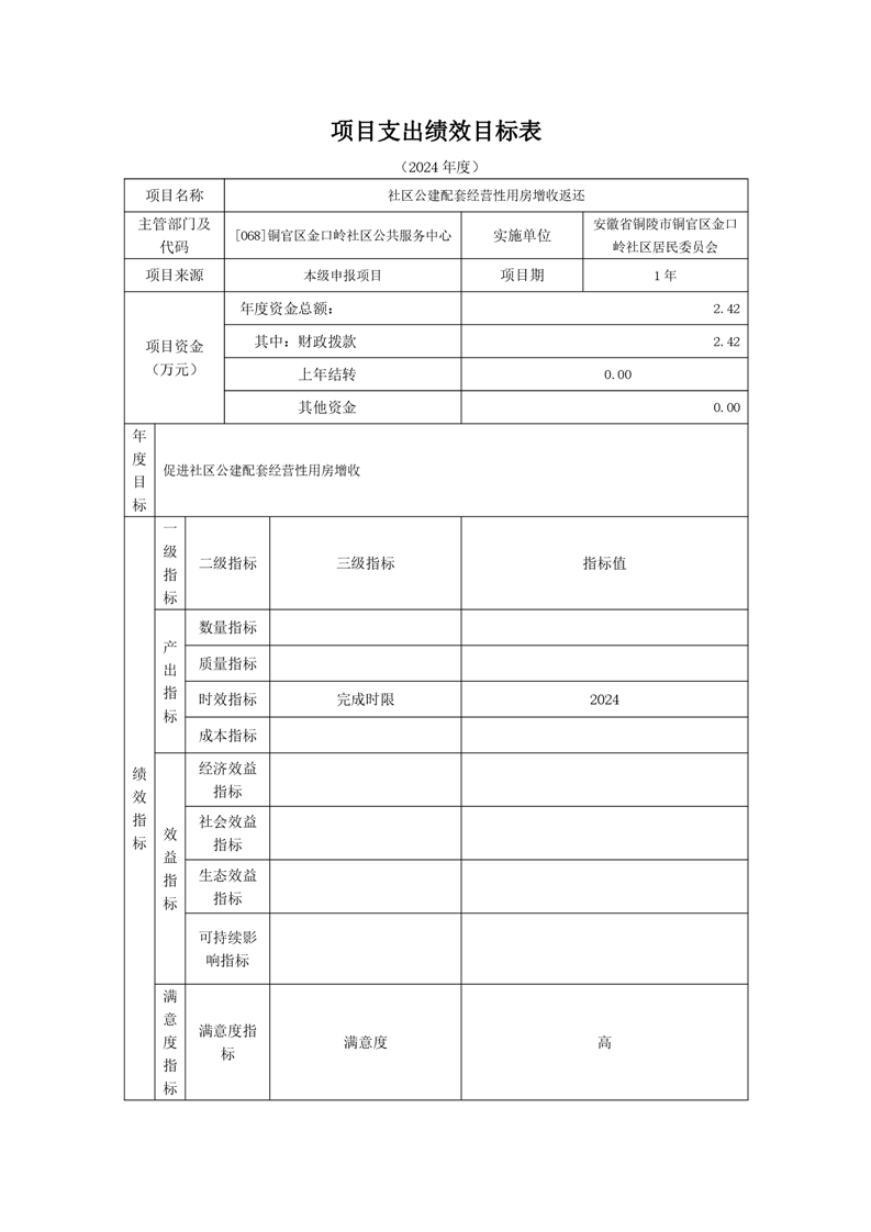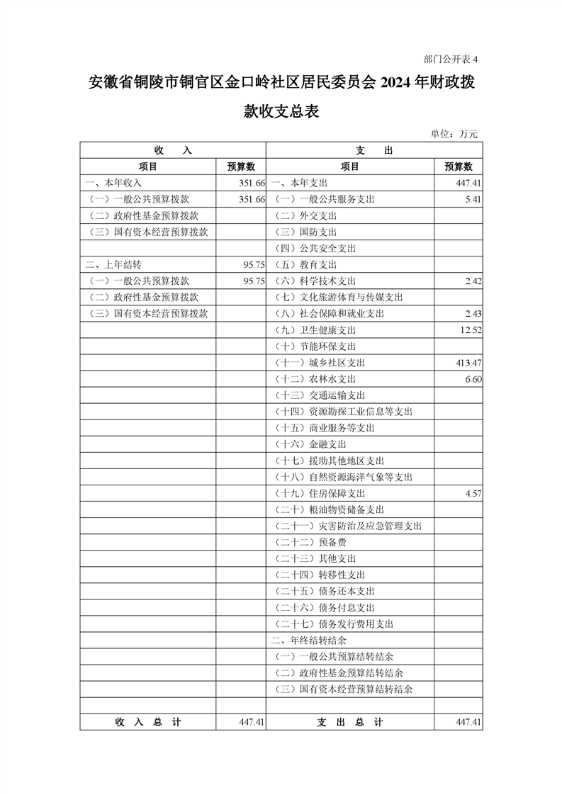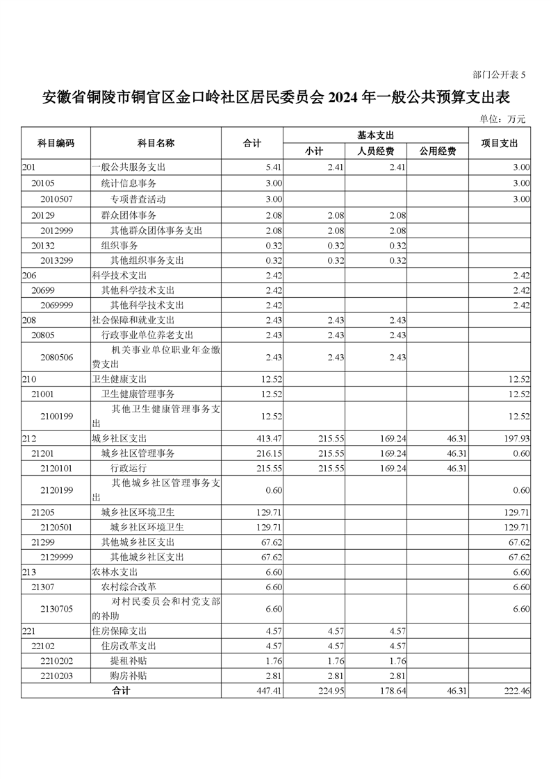 铜官区金口岭社区2024年部门预算-铜官区人民政府
