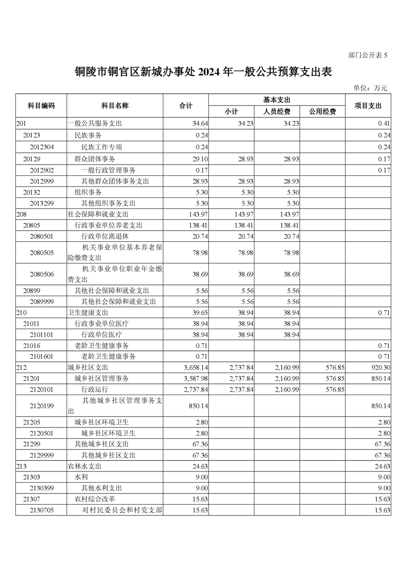 铜陵市铜官区新城办事处2024年部门预算-铜官区人民政府