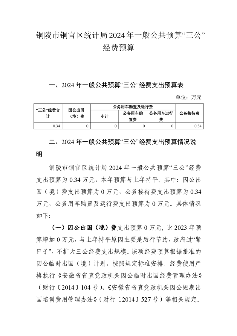 铜陵市铜官区统计局2024年一般公共预算“三公”经费预算-铜官区人民政府