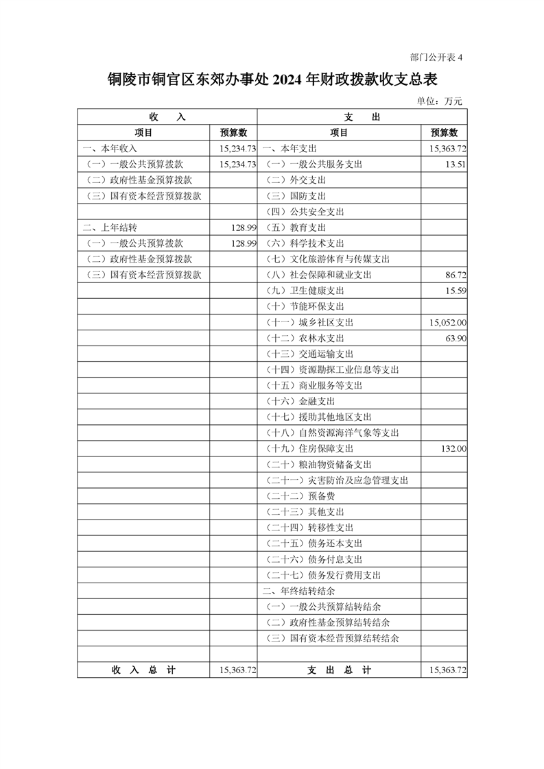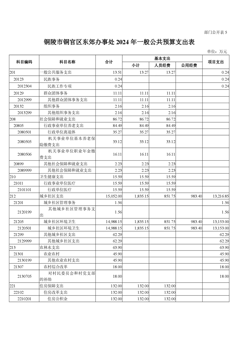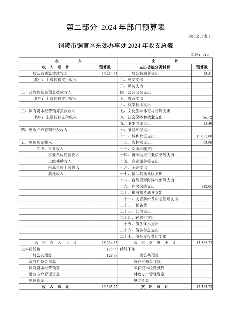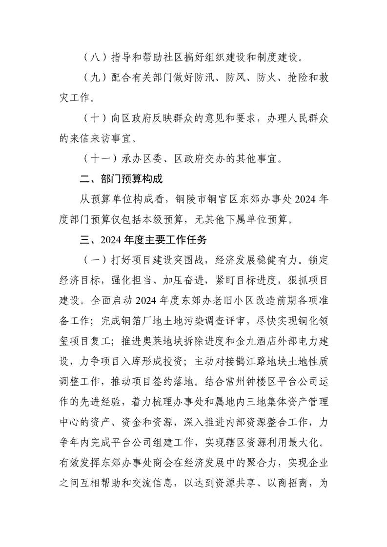 铜陵市铜官区东郊办事处2024年部门预算-铜官区人民政府