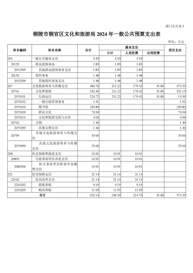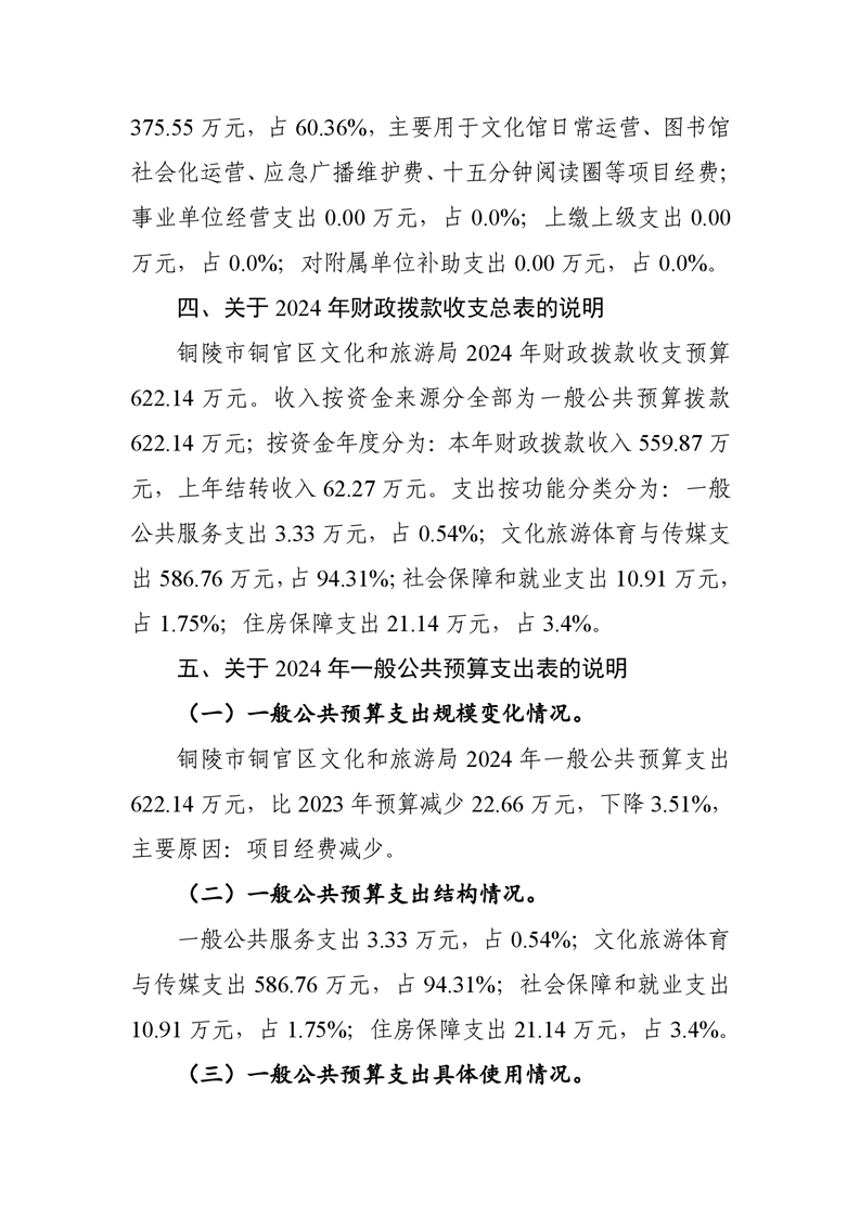 铜陵市铜官区文化和旅游局2024年度预算信息公开-铜官区人民政府