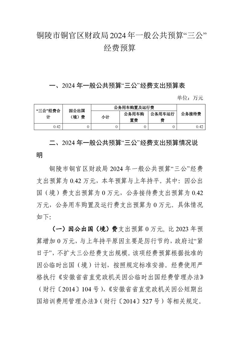 铜官区财政局2024年一般公共预算“三公”经费预算-铜官区人民政府