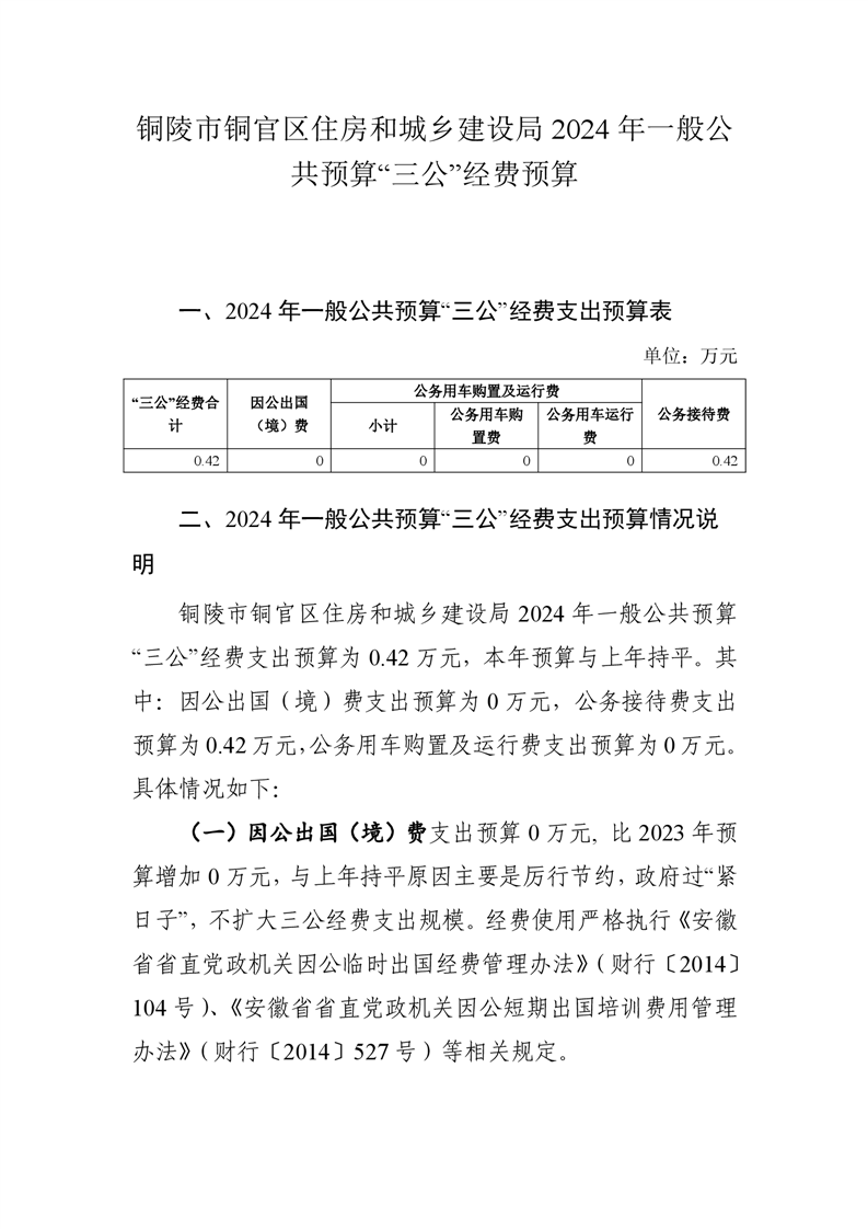 铜陵市铜官区住房和城乡建设局2024年度三公经费预算信息公开-铜官区人民政府