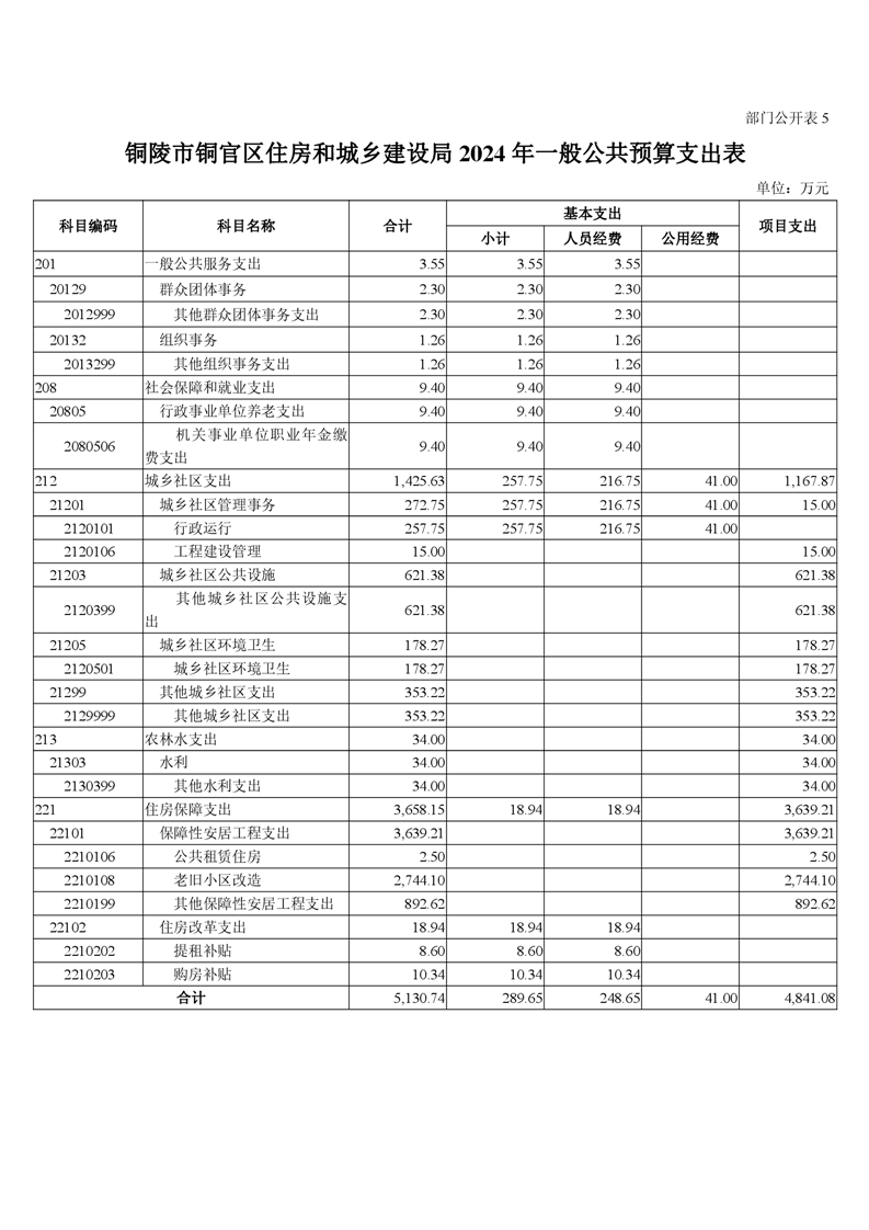 铜陵市铜官区住房和城乡建设局2024年部门预算-铜官区人民政府