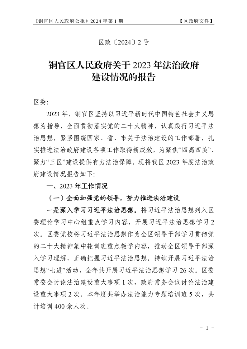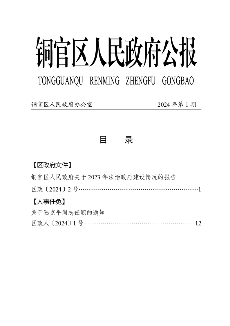 铜官区人民政府公报(2024年第一期)-铜官区人民政府