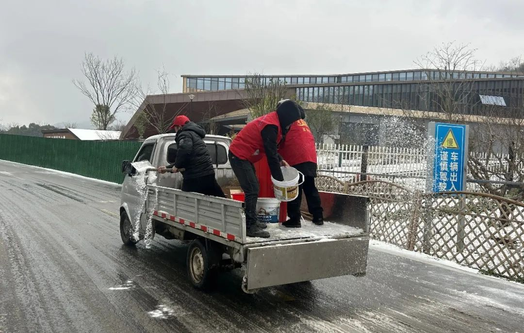 各单位充分发挥基层党组织战斗堡垒作用和党员先锋模范作用,机关职工、社区工作者、城管队员和志愿者冲在一线,发扬不怕苦、不怕累的精神,挥舞着铁铲、扫帚等工具,清理道路上的积雪。区应急、住建、城管等部门按照省市区要求组织队伍,启动我区管养的支次道路铲雪工作,各镇办社区组织队伍对小区内和出入口道路开展铲雪工作,做到雪停路净。