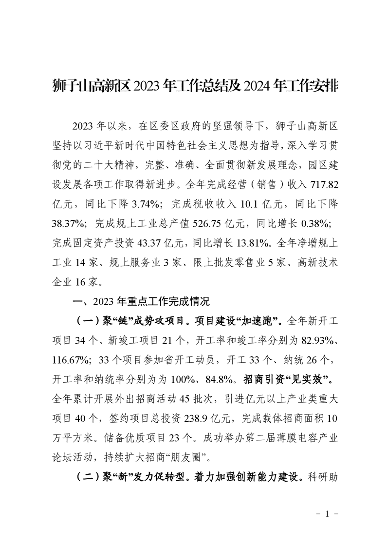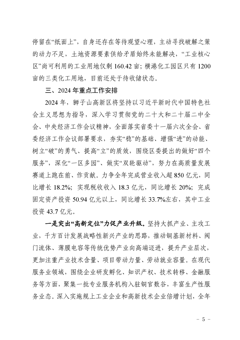 狮子山高新区2023年工作总结及2024年工作安排-铜官区人民政府