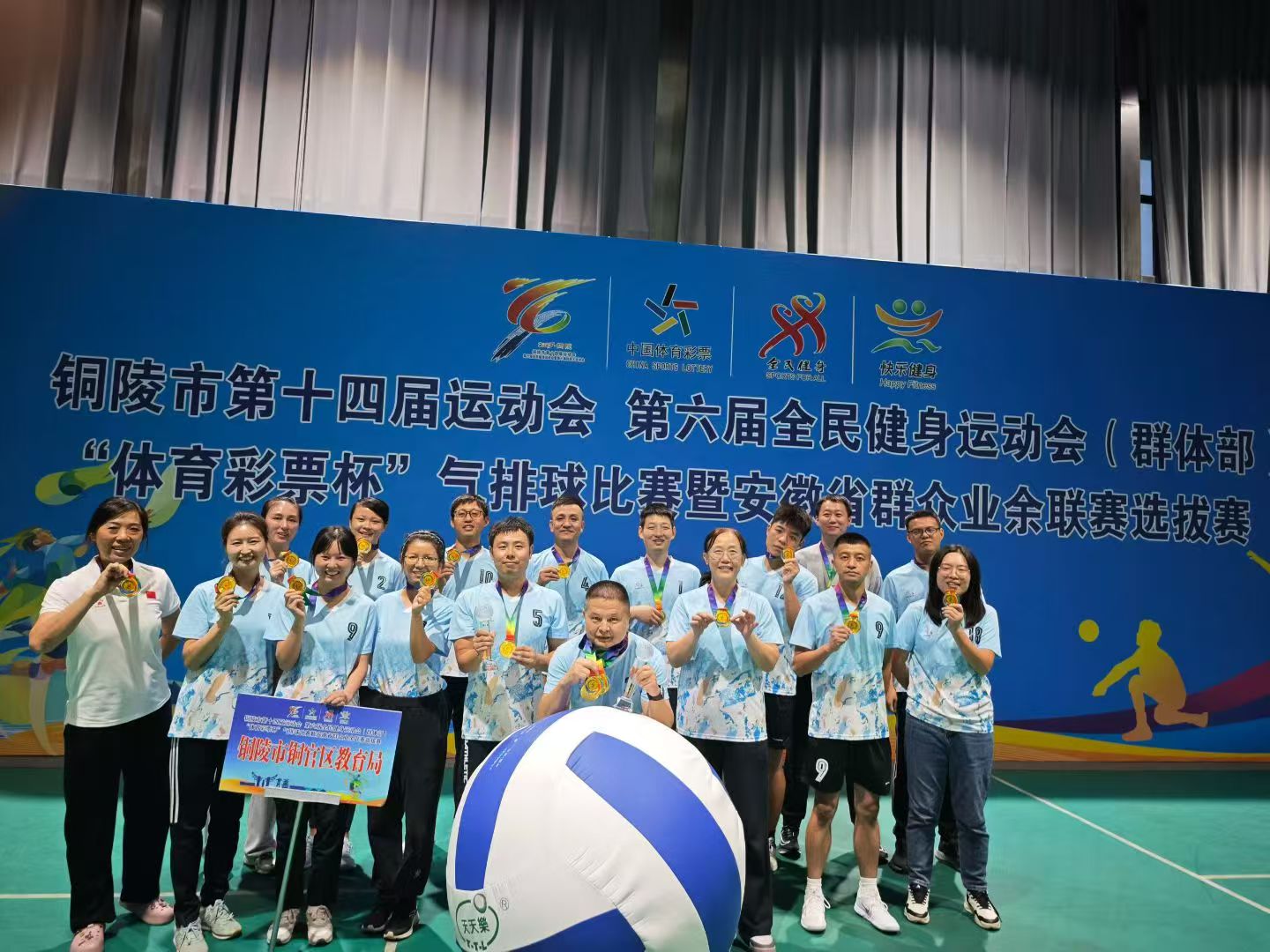 在铜陵市第十四届运动会暨第六届全民健身运动会气排球比赛中,铜官区教育局男子、女子气排球队发挥出色,双双以全胜战绩勇夺桂冠,展现了教育系统昂扬向上的精神风貌。
