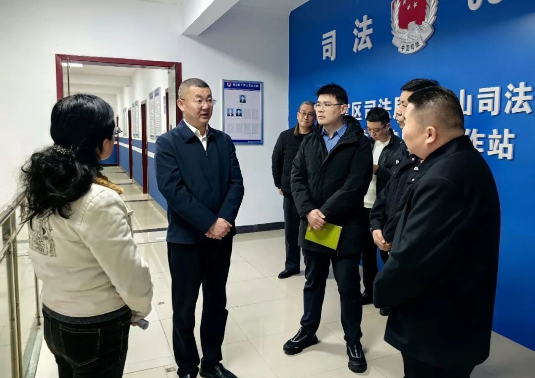 在铜官山社区劳动警务室,王书春与社区民警、网格员深入交流,询问日常协作、信息共享、联合处置等环节的具体实践与难点问题。他指出,要打破部门壁垒,推动警格与网格在信息收集、矛盾排查上实现“双向进入、深度融合”,杜绝“两张皮”现象;要充分挖掘社区治理潜能,积极发动老党员、老干部等“银发力量”参与邻里纠纷调解,利用其人熟、地熟、情况熟的优势,让“老娘舅”成为化解矛盾的“金钥匙”。随后,在铜官山司法所,王书春详细了解人员编制、队伍结构、专业能力等配备现状,听取法治宣传教育与矛盾纠纷排查化解融合情况介绍,强调要将法治宣传融入调解全过程,充分利用“周五说事日”平台,引导群众办事依法、遇事找法,从源头上减少矛盾发生。