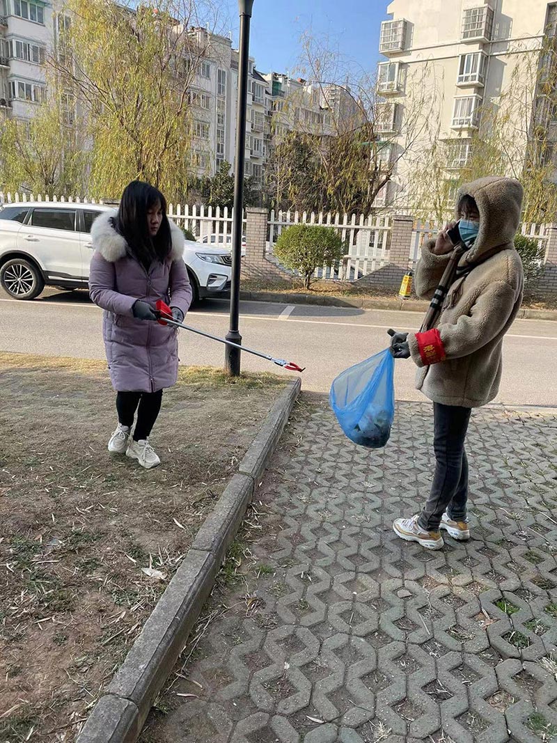 活动开始前,大家在社区集中领取了手套、垃圾袋、夹子、抹布等工具,同时,结合辖区实际情况,分为两个小组。大家在做好自身安全防护的同时,不顾严寒,不怕脏、不怕累,深入社区居民小区,重点清理了服务区的树枝、杂草、塑料袋、烟头等,并对乱停放的共享单车进行了整理。