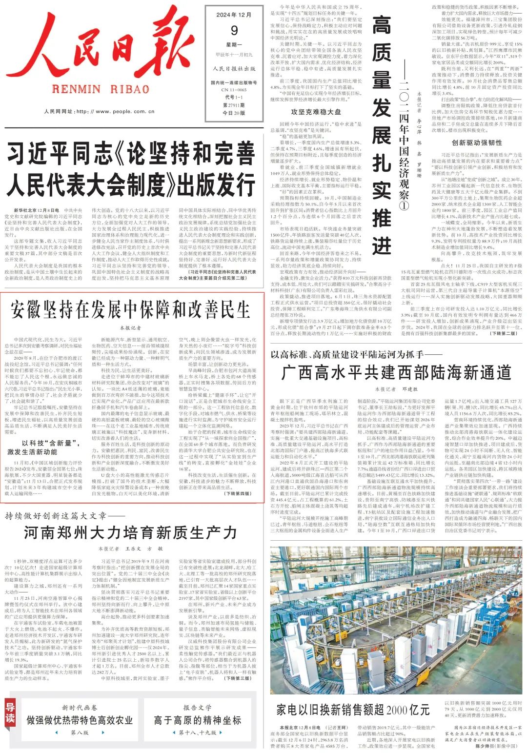 11月初,《中国区域创新能力评价报告2024》发布,安徽居全国第七位;珠海航展,不少大国重器、明星装备都是“安徽造”;11月13日,合肥正式发布规划,计划未来3年构建城市空中交通载人运输网络……