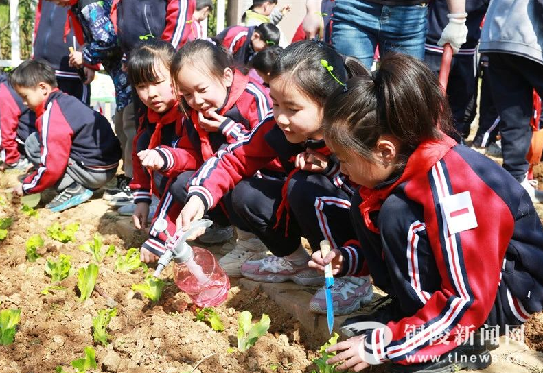 3月20日,在铜陵市铜官区铜都小学“铜园”里,学生们正在种植辣椒苗。据悉,当天该校组织学生开展第三届“春耕节”活动,让孩子们在劳动中体会和学习农耕文化。