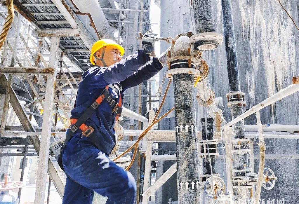 7月18日,位于横港化工园的六国化工机运车间内,维修人员正改造生产管道。