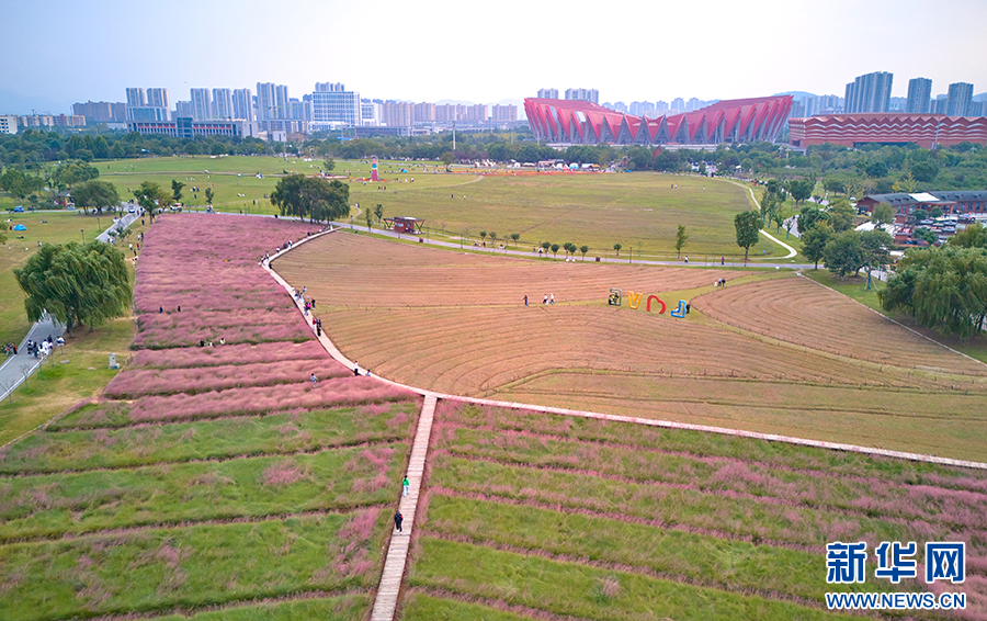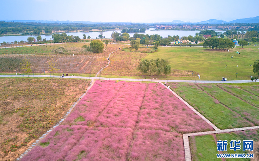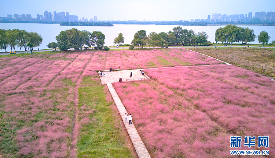 深秋时节,安徽省铜陵市西湖城市湿地公园内,连片的粉黛乱子草如梦如幻,吸引了众多游客前往观光打卡,陶醉其间,乐享美好时光。