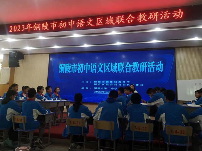 美文共欣赏,疑义相与析。4月26日下午,铜陵市初中语文(铜官区、义安区)联合教研活动在铜陵市第二中学拉开帷幕。铜官区教研室主任、语文教研员李志明、义安区教研室副主任、语文教研员佘一清、铜陵市语文名师工作室主持人余国胜、王俊妹老师及全市初中语文教研骨干出席活动。
